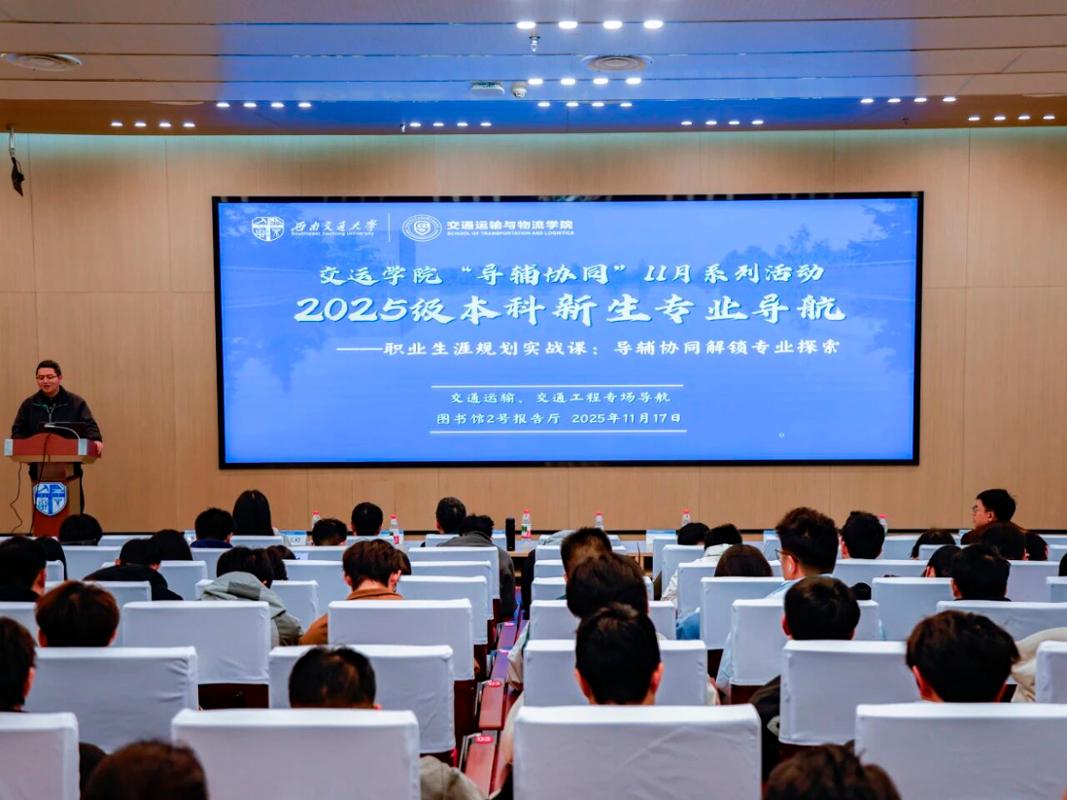 立足“导辅协同”育人机制,依托“职业生涯规划实战课”平台,11月17日晚,学院在犀浦校区图书馆1号、2号报告厅举办2025级本科新生专业导航活动,助力新生深入探索专业内涵、明晰学业发展方向。
