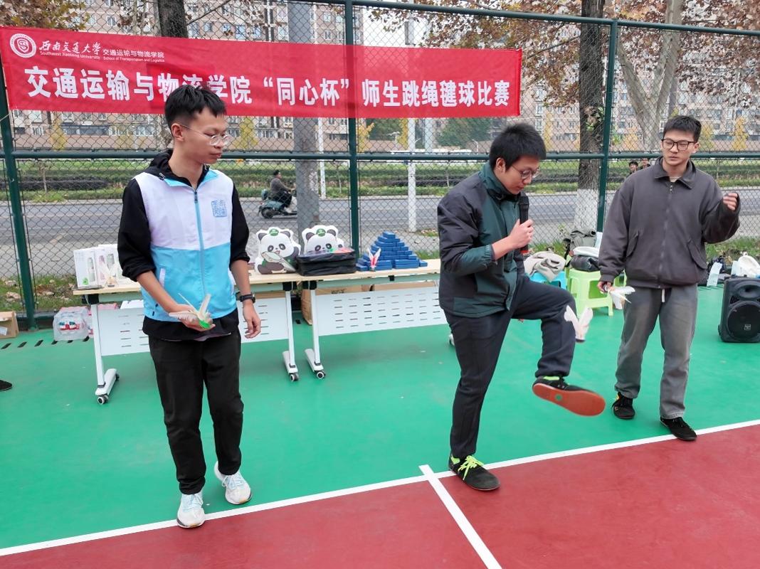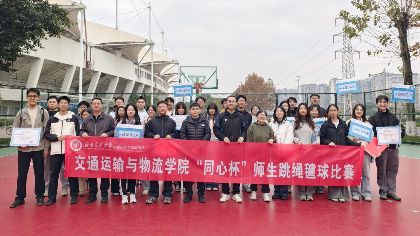 11月21日下午,交通运输与物流学院“同心杯”师生跳绳毽球比赛在冬日暖阳中顺利举行。本次活动以传统体育为载体,旨在增强师生体质、促进导学互动,推动“五育并举”落到实处。来自学院的百余位师生组成28支队伍参加了比赛。