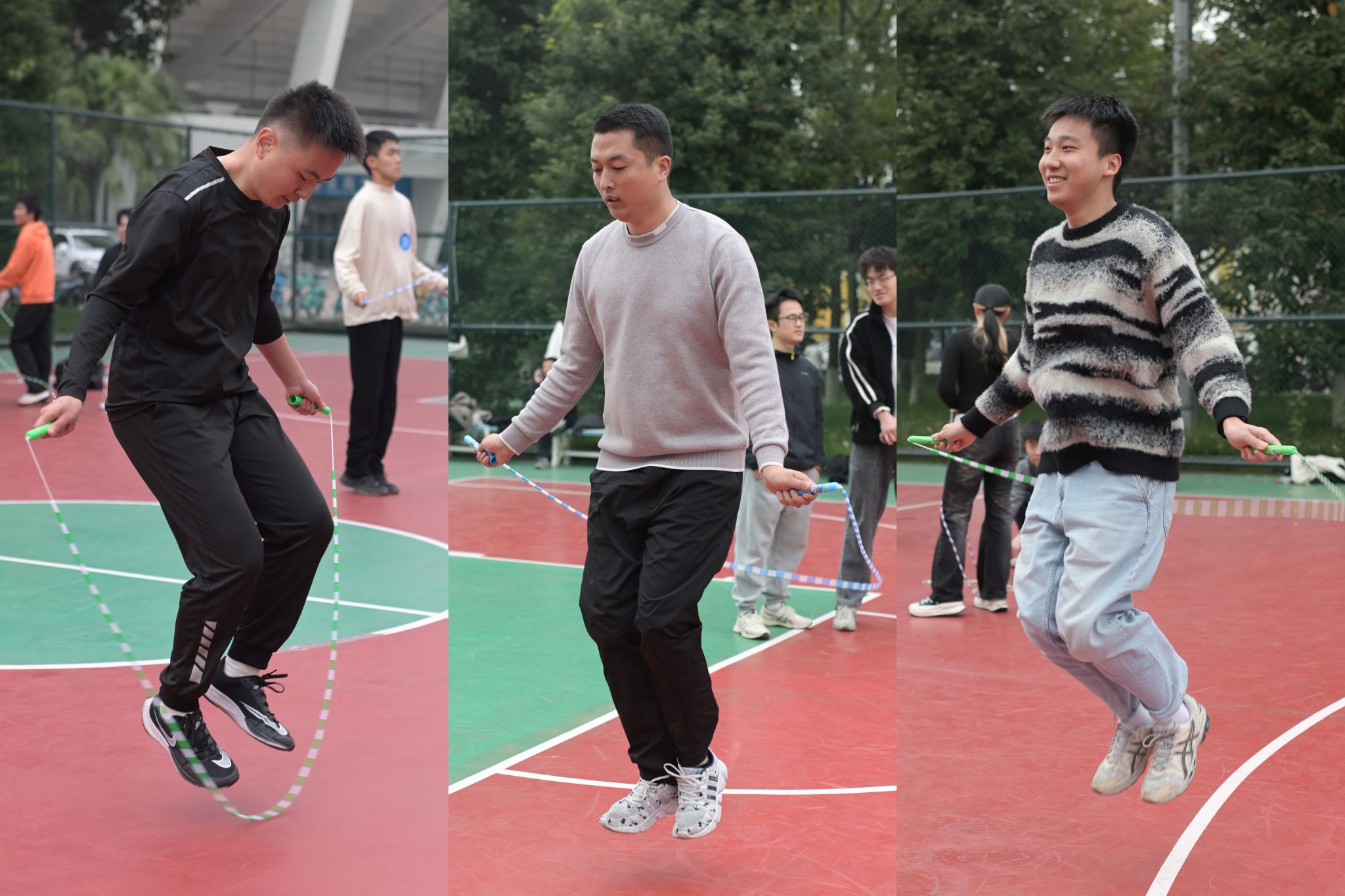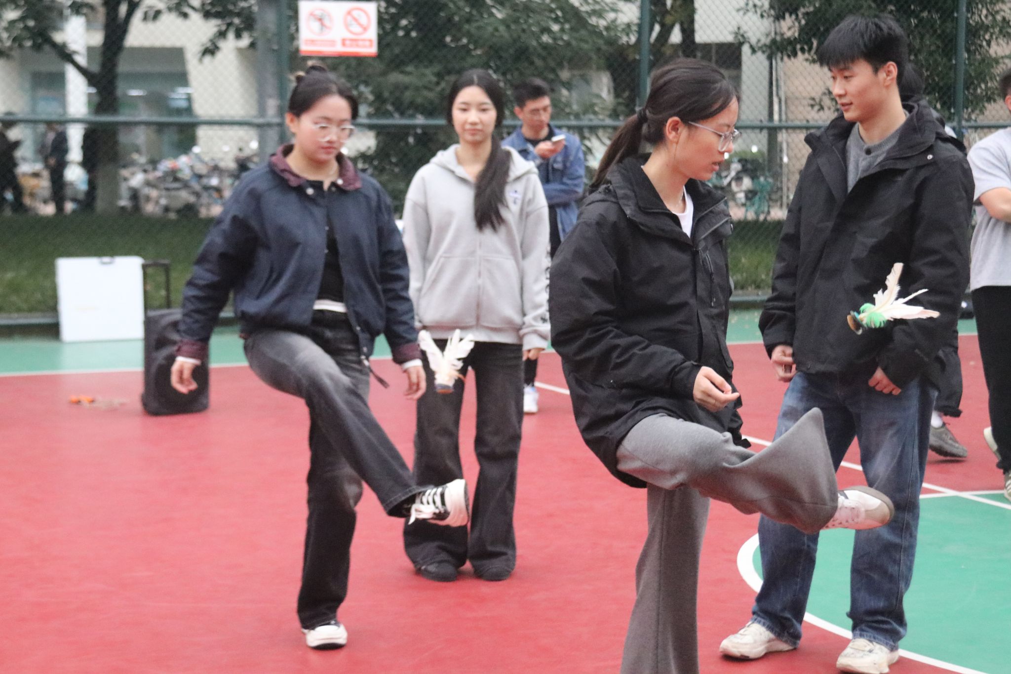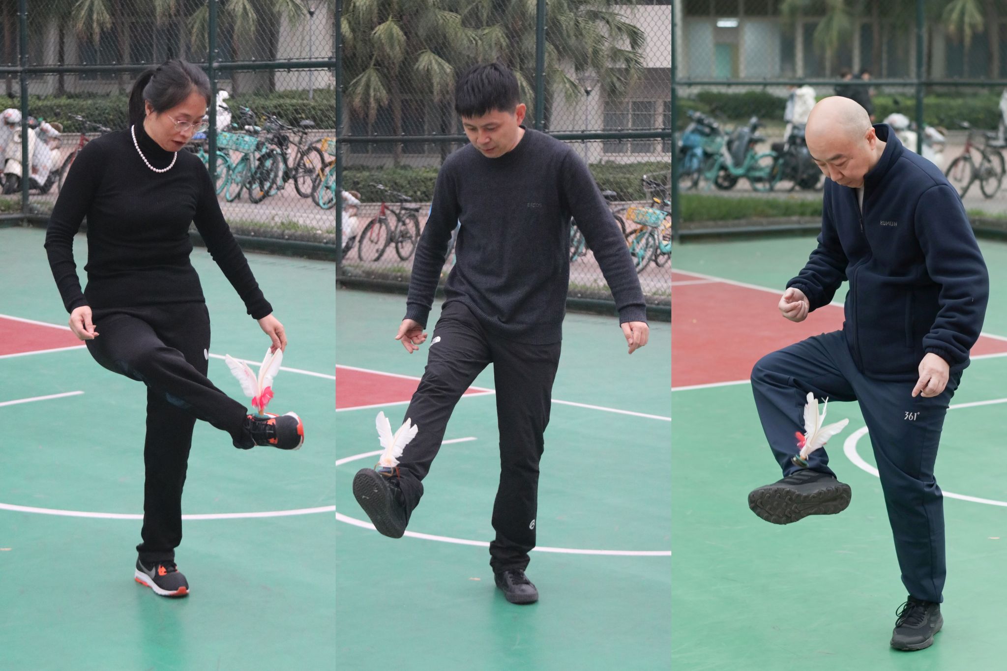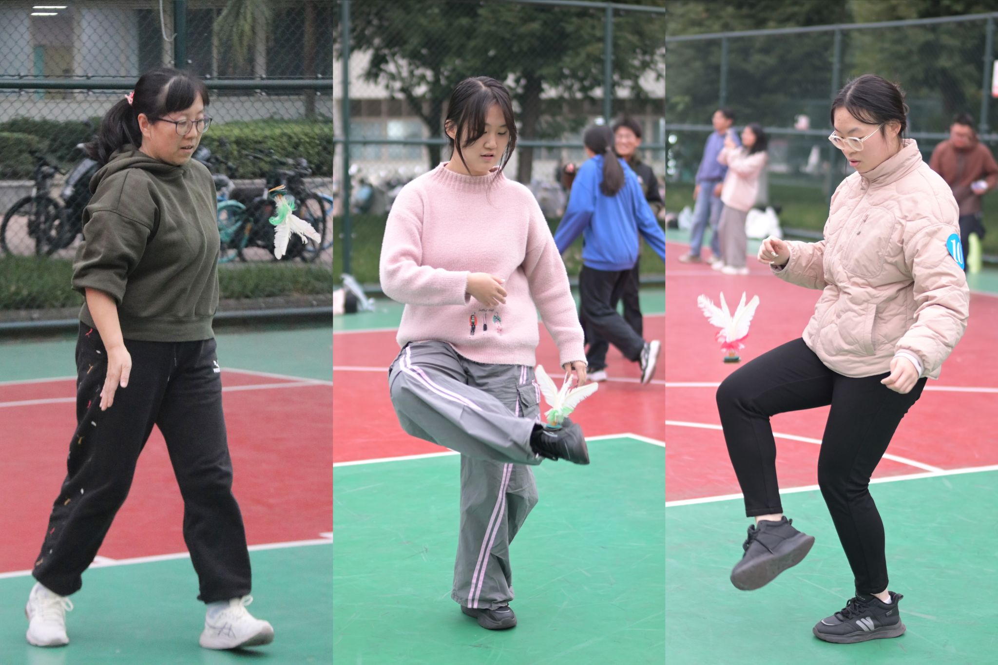 比赛在“预备——开始!”的口令中拉开帷幕。跳绳赛场,师生配合默契,节奏一致;毽球场地,彩羽翻飞,传递顺畅。现场加油声、欢笑声、计数声此起彼伏,气氛热烈。比赛间隙,毽球协会同学还带来了精彩的毽球表演,灵动的动作和娴熟的技巧赢得阵阵掌声。