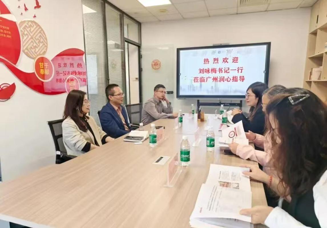 考察团走访了广州润心集团总部与大康心理广州培训学院。其中,广州润心集团与中心有坚实的共建交流合作基础。座谈中,广州润心集团详细介绍了集团的发展历程、业务布局及行业成就,展现了广州润心集团在心理健康教育应用领域的深厚积淀与良好发展态势。双方围绕心理健康教育服务方面人才需求、职业规划、就业形势等方面进行了深入交流。双方明确将在前期合作基础上,继续推动深入交流,加强实习实践合作。
