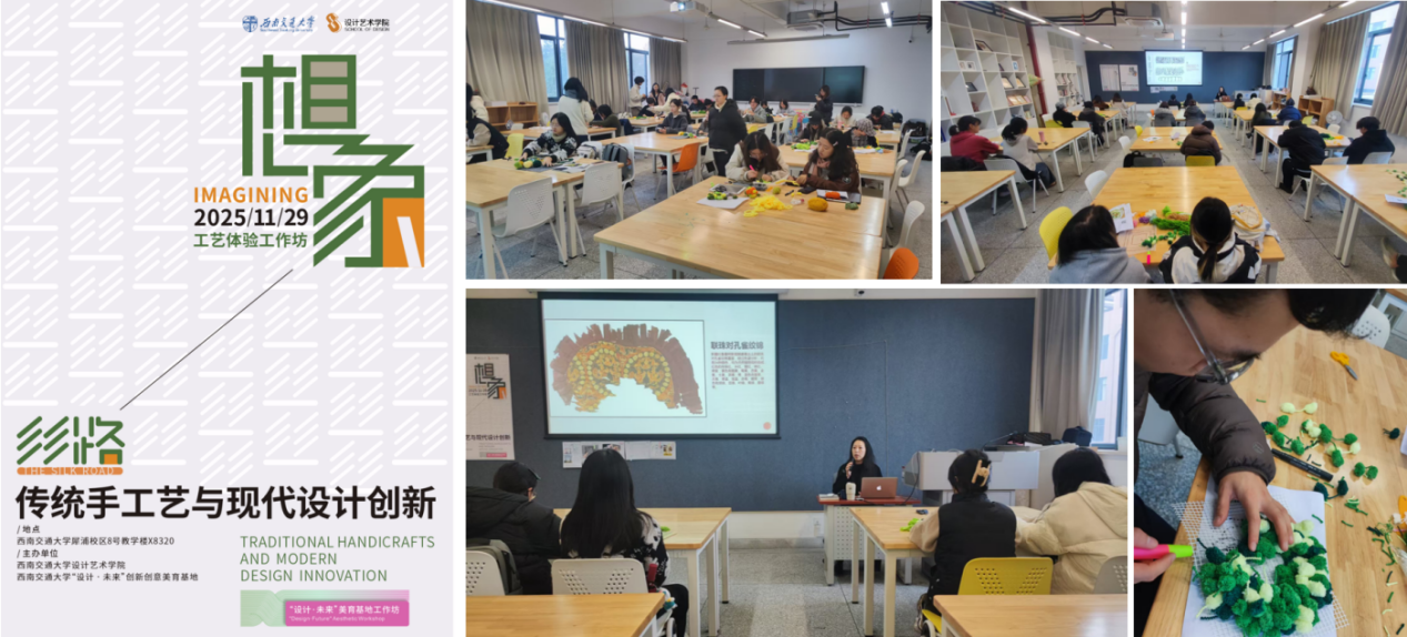 11月29日,由西南交通大学设计艺术学院“设计·未来”创新创意美育基地主办,设计艺术学院学生会协办的“想象·丝路——传统手工艺与现代设计创新体验”工作坊在设计艺术学院X8320教室举行。来自全校不同学院、不同专业的近30名本科生齐聚一堂,在一整天的沉浸式体验中,以丝绸之路文化为纽带,在传统手工艺与现代设计思维的碰撞中开启了一场别开生面的创意之旅。