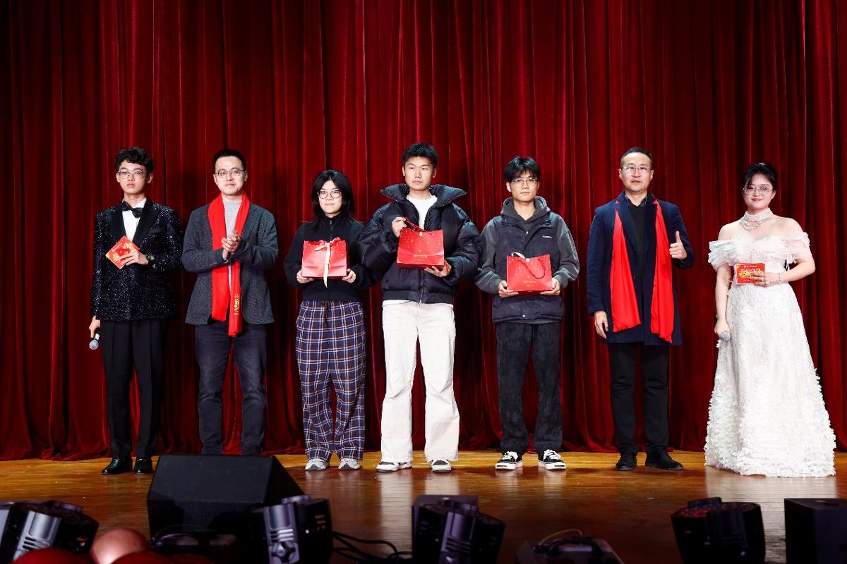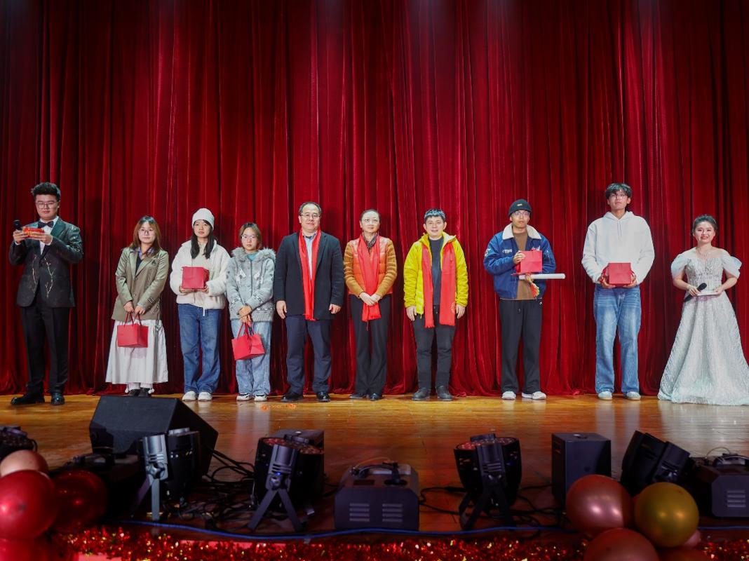 抽奖环节高潮迭起,学院党委书记张光远,院长刘晓波,党委副书记刘继宗,副院长鲁工圆,副处级组织员陈璐,专项主管王坤、陶思宇相继登台抽奖,台下掌声雷动。他们与中奖者一同庆祝这个喜悦与幸福交织的时刻。抽奖互动环节不仅为晚会增添了别样的趣味,还让每一位参与者都感受到了惊喜与欢乐。