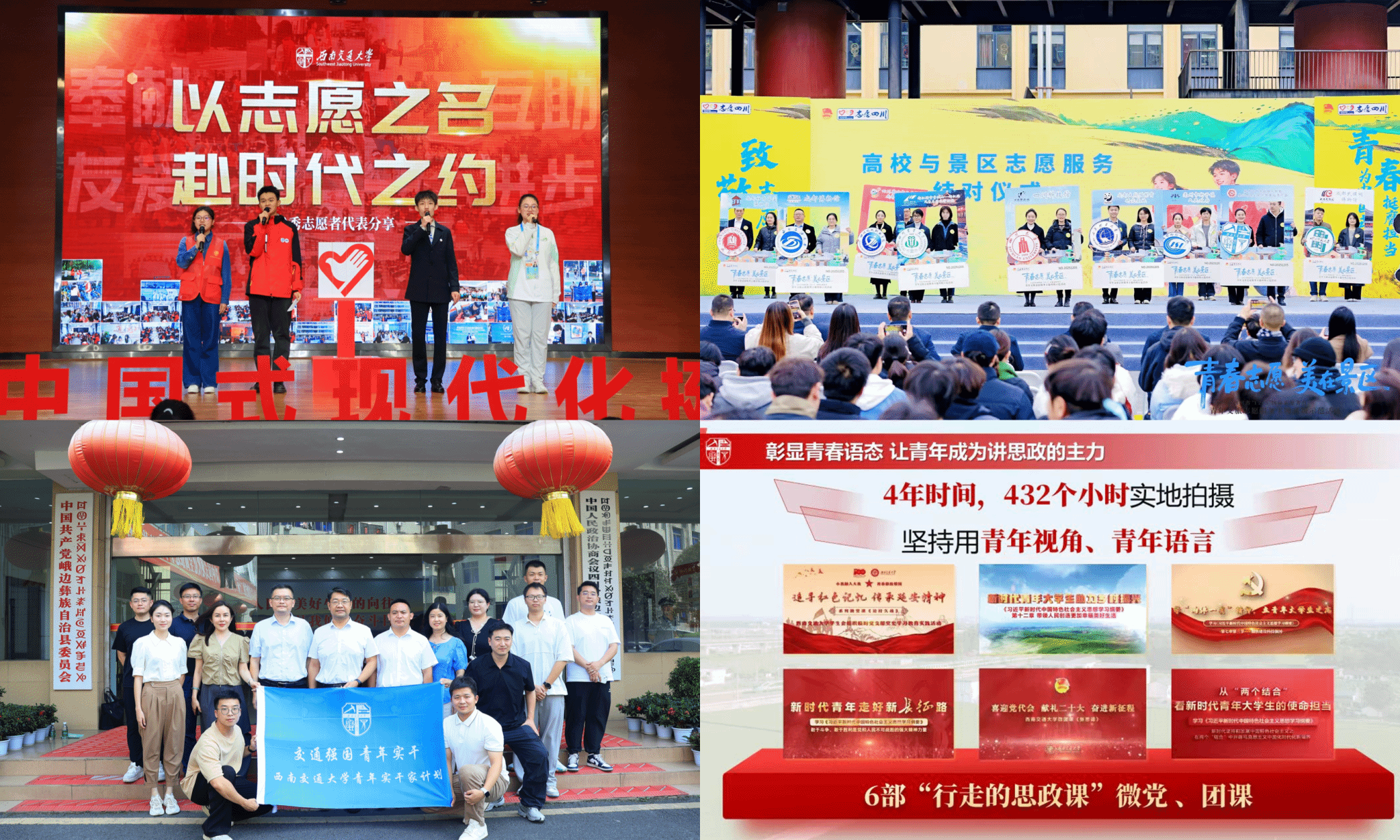 在实践服务中厚植家国情怀。校团委组织志愿者代表在学校共青团实践育人成果展暨年度表彰大会上作交流分享,持续推进“文明校园 共建共享”志愿服务活动。在省级“青春志愿·美在景区”示范活动中,学校与共青团中国铁路成都局集团有限公司成都车站结对,组织志愿者参与高峰期客流服务,服务春运暑运保障工作。学生会持续开展“行走的思政课”项目,打造一批有交大特色的团课素材库,不断提高思政课的针对性和吸引力;交大“青年实干家”们对接地方发展需求,奔赴基层一线挂职锻炼,在实干中提升能力。第27届研究生支教团发起一年一度的“暖冬行动”,开展红色宣讲、“石榴籽”民族团结课堂、书信漂流等活动,用实际行动助力西部地区教育发展。服务于联合国粮农组织驻华代表处的志愿者王冰旭,以专业为笔、热情为墨,在微小岗位上践行对可持续发展的责任。交大共青团充分发挥组织优势,推动在志愿服务中立德树人。