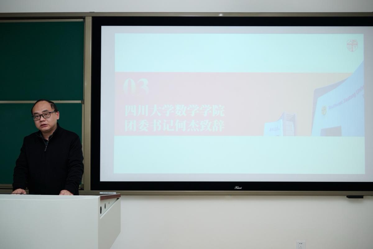 何杰代表兄弟院校致辞,对西南交通大学数学学院的精心组织与周到安排表示衷心感谢。他结合四川大学数学学院的工作实践,分享了以数为魂铸思想之基、以数为媒筑育人之梦、以数为桥搭交流之台的做法和经验,并发出诚挚邀请,希望各校师生未来能走进川大,共同为数学学科发展、拔尖人才培养贡献力量。