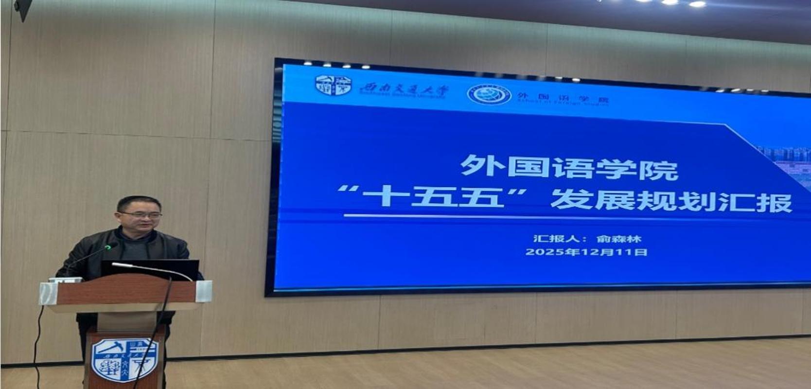 随后,院长俞森林作《外国语学院“十五五”发展规划》报告。报告系统梳理了学院在“十四五”期间的建设成效与短板不足,分析了“十五五”时期面临的发展机遇和挑战,并明确了未来发展的核心任务与实施路径。俞森林号召全院教职工凝心聚力,把握趋势,聚焦关键领域寻求突破,共同实现学院发展的新跨越。