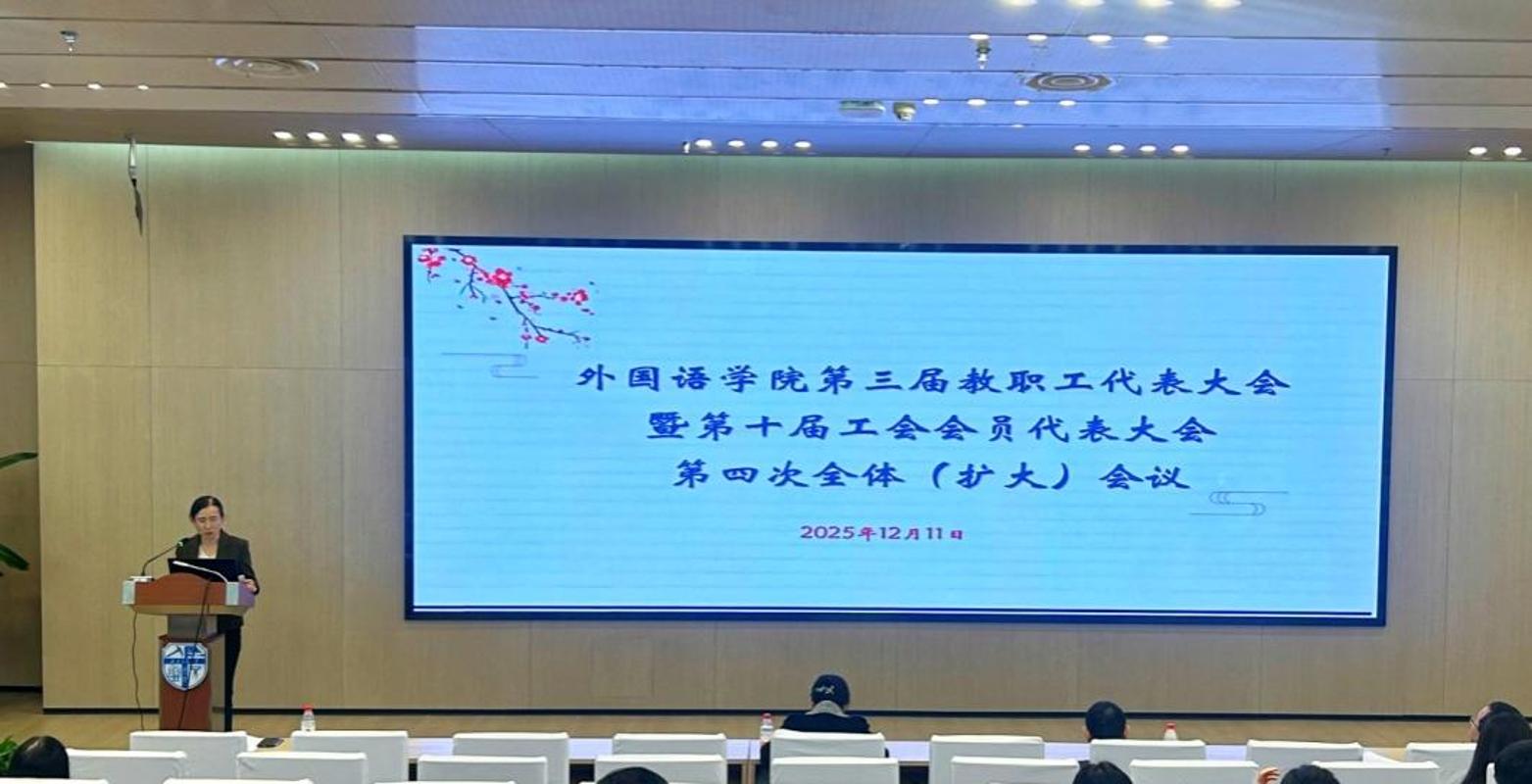 12月11日下午,外国语学院召开教职工大会暨第三届教职工代表大会、第十届工会会员代表大会第四次全体(扩大)会议。会议由学院工会主席、副院长余清秀主持。