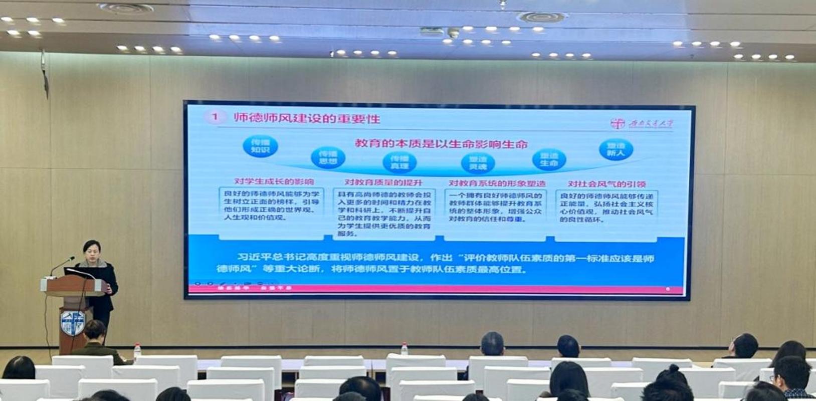 会上,学院党委书记李成坚首先带领全体教职工开展“师德师风专题学习”。她表示,全体教师要认真学习相关文件、剖析警示案例,师德师风建设尤为重要,希望全体教职工严守十项准则、筑牢思想防线,进一步提高思想认识,切实消除潜在隐患。