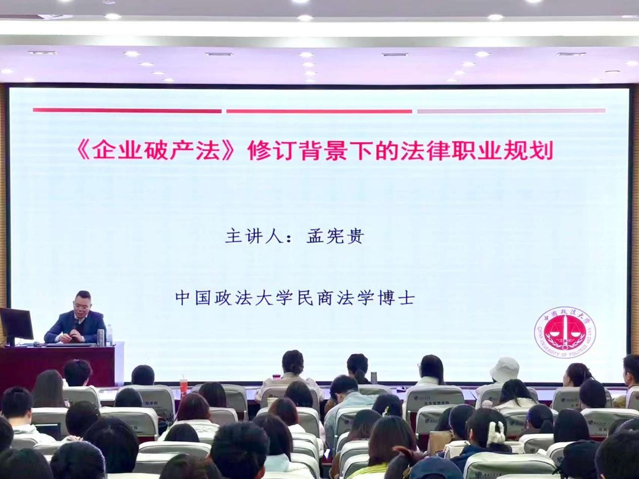 12月11日下午,西南交通大学九里校区零号教学楼0231教室座无虚席,《企业破产法》修订背景下的法律职业规划专题讲座在此顺利举行。中国政法大学民商法学博士、西南交大-徐和徐破产法学研究与人才培养基地研究员孟宪贵受邀主讲,他以鲜明的结构、鲜活的案例,从职业选择到法律思维,再到破产法制度未来走向,为同学们打开了一扇具有无数可能性的大门。