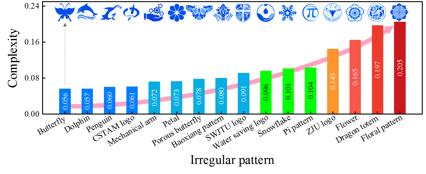 图3. 非规则图案界面复杂度的评估结果。每个色条的值对应所指示样本图案的复杂度。