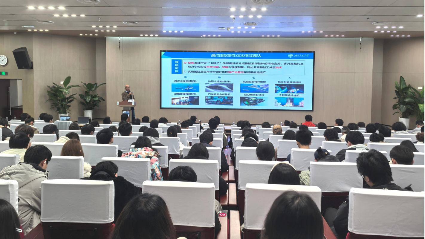 12月15日晚,西南交通大学扬华讲席教授、博士生导师白晨曦以“人工合成高性能橡胶全链条技术的自主创新与工程实践”为题,在犀浦校区二号报告厅开展了一场精彩的讲座,近300名师生齐聚现场,共话科研创新与人才培养的时代使命。本期“明诚讲堂”由党委宣传部主办、化学学院承办。