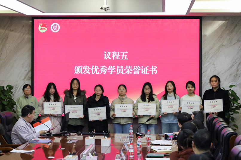 各学习小组依次汇报,围绕“筑牢信仰之基,践行服务之本——争做新时代担当有为的学生骨干”主题集中展示学习成果,充分体现青马工程在培育青年骨干政治品格与综合能力方面的育人成效。李俊仪宣读结业学员名单,张素风宣布优秀学员名单并为优秀学员颁发荣誉证书,对学员在培训期间的投入与进步给予充分肯定。