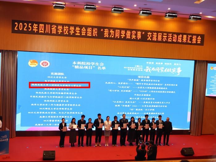12月14日至15日,由共青团四川省委、四川省学生联合会主办,西南石油大学承办的2025年四川省学校学生会组织“我为同学做实事”项目交流展示活动在西南石油大学(新都校区)落下帷幕。活动共吸引全省214所学校的381个项目参与。心理研究与咨询中心学生会项目《“心光计划”——全景式心理健康服务赋能成长》获评“百佳项目”(全省100项),同时荣获“精品项目”(全省30项)。