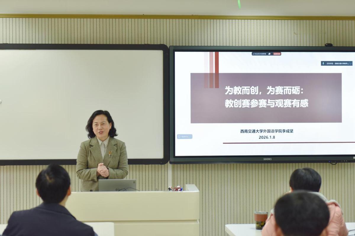 为帮助参赛教师精准把握全国高校教师教学创新大赛核心导向、提升备赛实效,1月8日上午,西南交通大学本科生院(教师教学发展中心)在犀浦校区举行第六届全国高校教师教学创新大赛(以下简称“教创赛”)备赛研习活动。外国语学院党委书记李成坚教授、建筑学院宣湟教授受邀作专题指导,围绕备赛要点展开细致讲解。活动由本科生院副院长兼教师教学发展中心主任李相强教授主持。