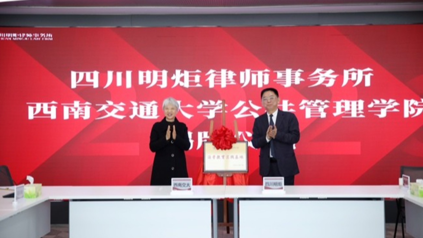 为深化法学教育与法律实务的协同联动,探索高质量法治人才培养新路径,2026年1月15日,西南交通大学公共管理学院与四川明炬律师事务所校企合作签约暨法学教育实践基地揭牌仪式在明炬律师事务所举行,标志着双方在人才培养、实践教学与学术研究等方面的合作迈入制度化、常态化的新阶段。