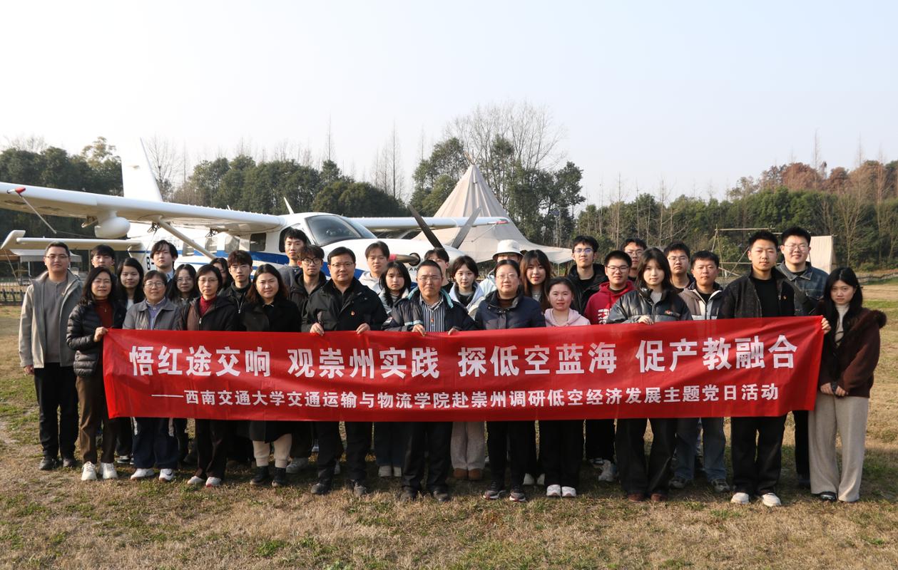为深入学习贯彻习近平总书记关于发展新质生产力的重要论述,精准对接国家低空经济发展战略部署,1月15日,交通运输与物流学院依托寒假“返家乡”社会实践平台,组建由学院团建工作中心、研究生会骨干牵头的低空经济调研与科普实践团队,带领师生党员、团员代表赴四川崇州开展主题党日暨社会实践活动,将思政课堂延伸至产业一线,引导青年学子在实践中深化对国家战略的理解,锤炼服务高质量发展的过硬本领。