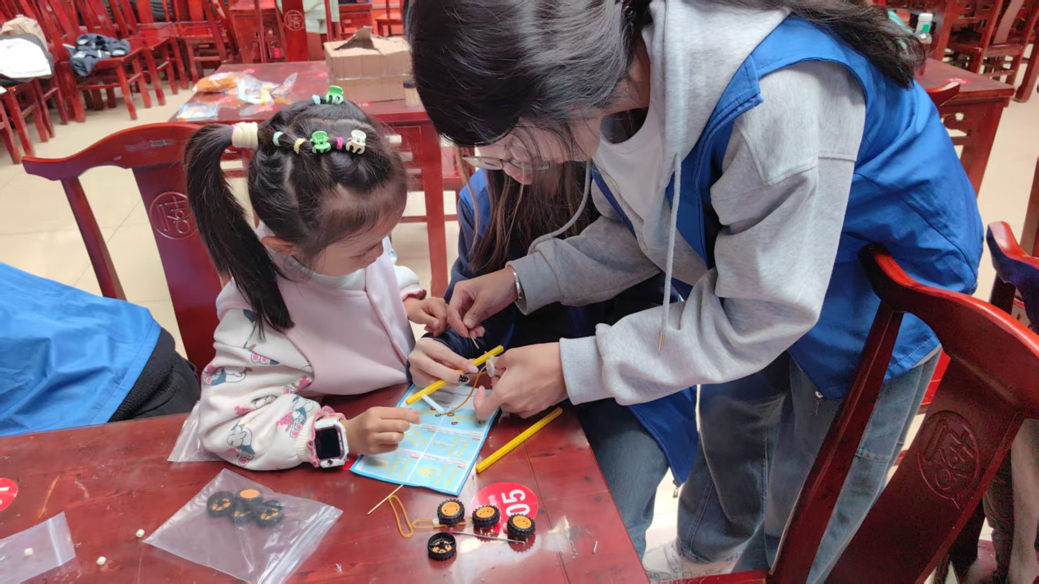 每周六下午,志愿者们在犀和社区开展趣味科普活动,将专业知识转化为生动有趣的实践内容。从蜂鸣器电路的原理探索到汉诺塔挑战的编程启蒙,志愿者们手把手指导孩子们完成实验操作,用通俗易懂的语言拆解科学奥秘,让孩子们在动手实践中直观理解学科基础概念,在欢声笑语中播下科学梦想的种子。