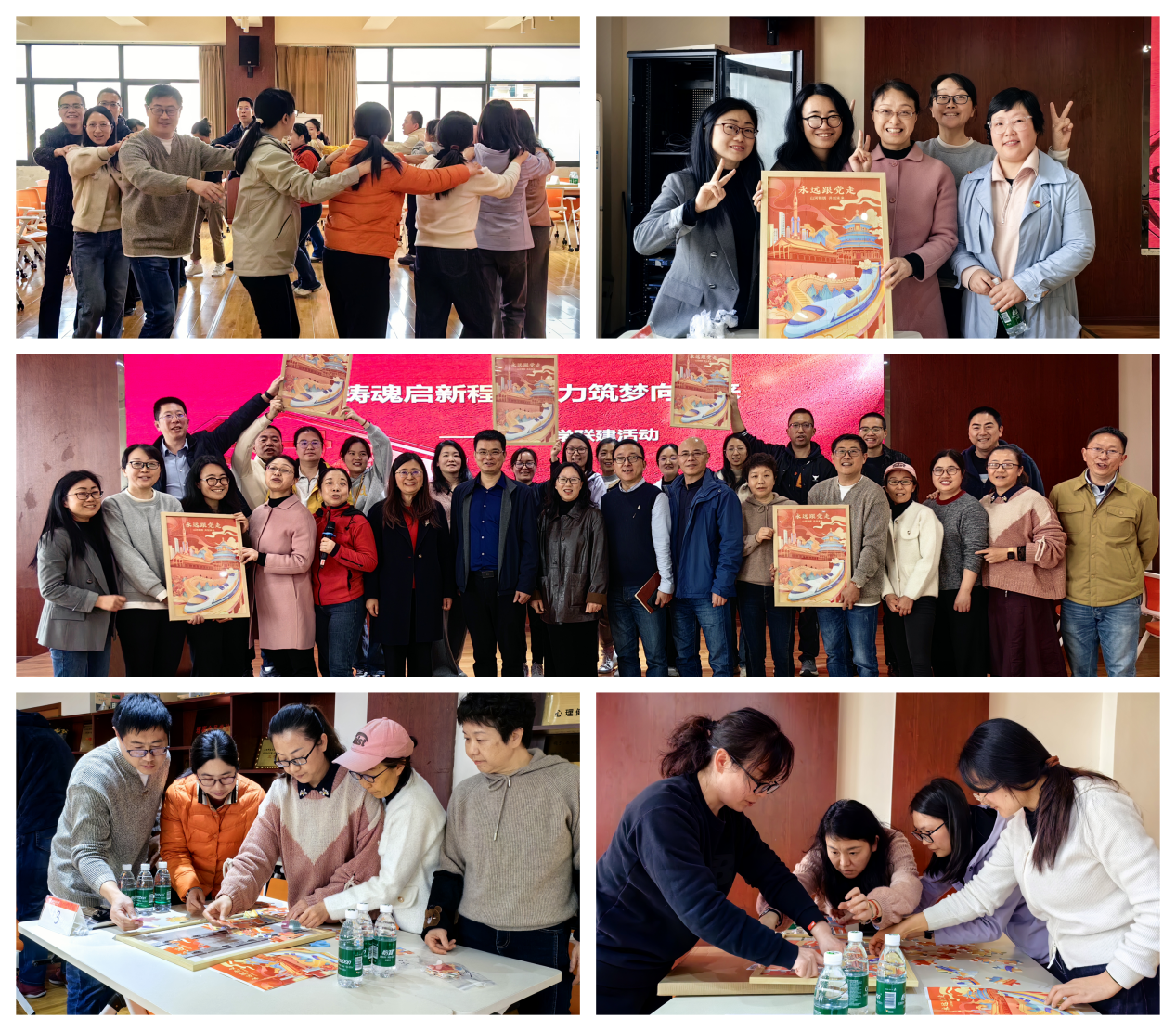 活动最后,心理中心教师高飞组织全体党员开展了“聚力筑梦,宏伟蓝图” 创意拼图大赛。比赛现场氛围轻松热烈,党员们分工协作、默契配合,在欢声笑语中赛出了团结协作的精神,增进了彼此的友谊。