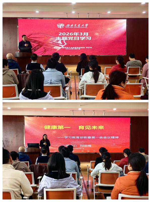 刘咏梅带领大家学习《教育部召开2026新春第一会全面部署推进学生身心健康工作》文件精神。她详细阐述了“健康第一”教育理念的核心要义与战略意义,并指出高校要加强“学生体质强健计划”“心理健康促进行动”“深化教育评价改革”“健全校家社协同育人机制”四个方面重点任务的落实。刘咏梅号召全体党员要把“健康第一”教育理念融入高校人才培养全过程,落实立德树人根本任务,以“健康第一”铸魂育人,以实干担当为学生护航成长。