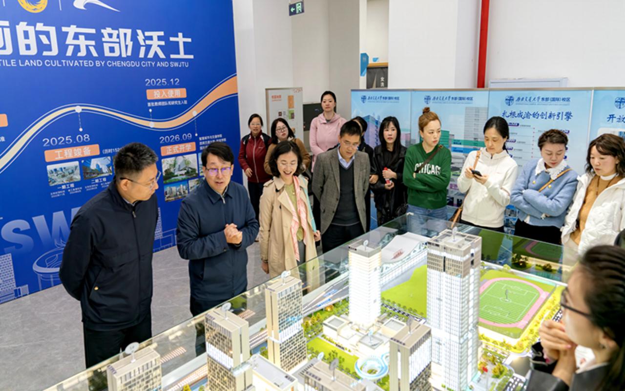 刘先峰在讲解中介绍,为积极响应成渝地区双城经济圈建设国家战略,西南交通大学充分聚合校地优势资源,与成都市人民政府携手合作,共建东部(国际)校区及交大东部科创园。目前,该校区已正式启用,标志着西南交通大学“一校两地四校区”协同联动、一体发展的办学新格局正式形成,为学校高质量发展注入了新的强劲动力。