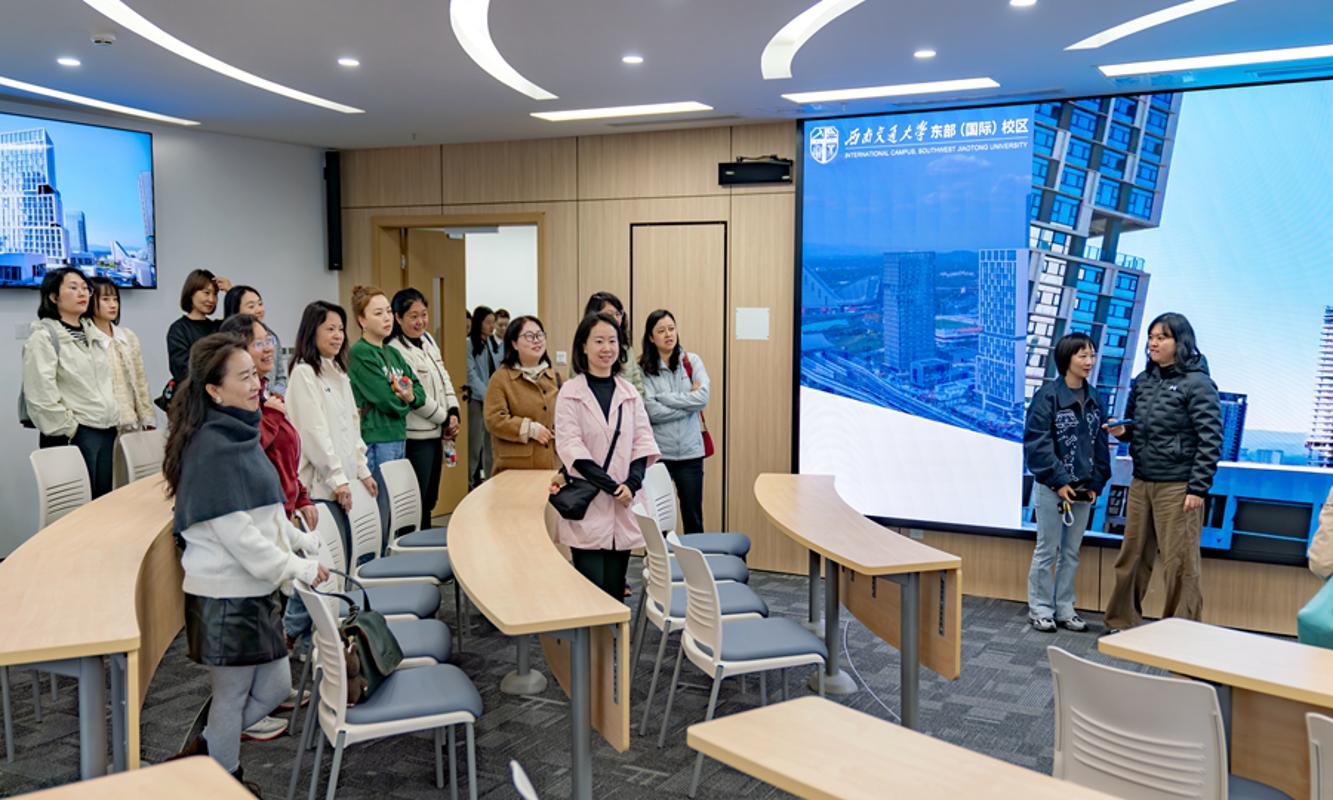 讲解结束后,全体女职工实地参观了智慧教室、多功能会议室、图书馆等核心场所,近距离体验智慧教学设备的便捷高效,亲身感受新校区在智慧教学与知识服务领域的前沿布局,对学校的发展潜力有了更直观、更深刻的认识。作为学校“一校两地四校区”格局中的重要组成部分,东部(国际)校区未来将持续传承和弘扬交大精神,聚焦学科交叉融合与国际合作,全力打造成为吸引和培养拔尖创新人才、孕育重大原创成果的新高地。