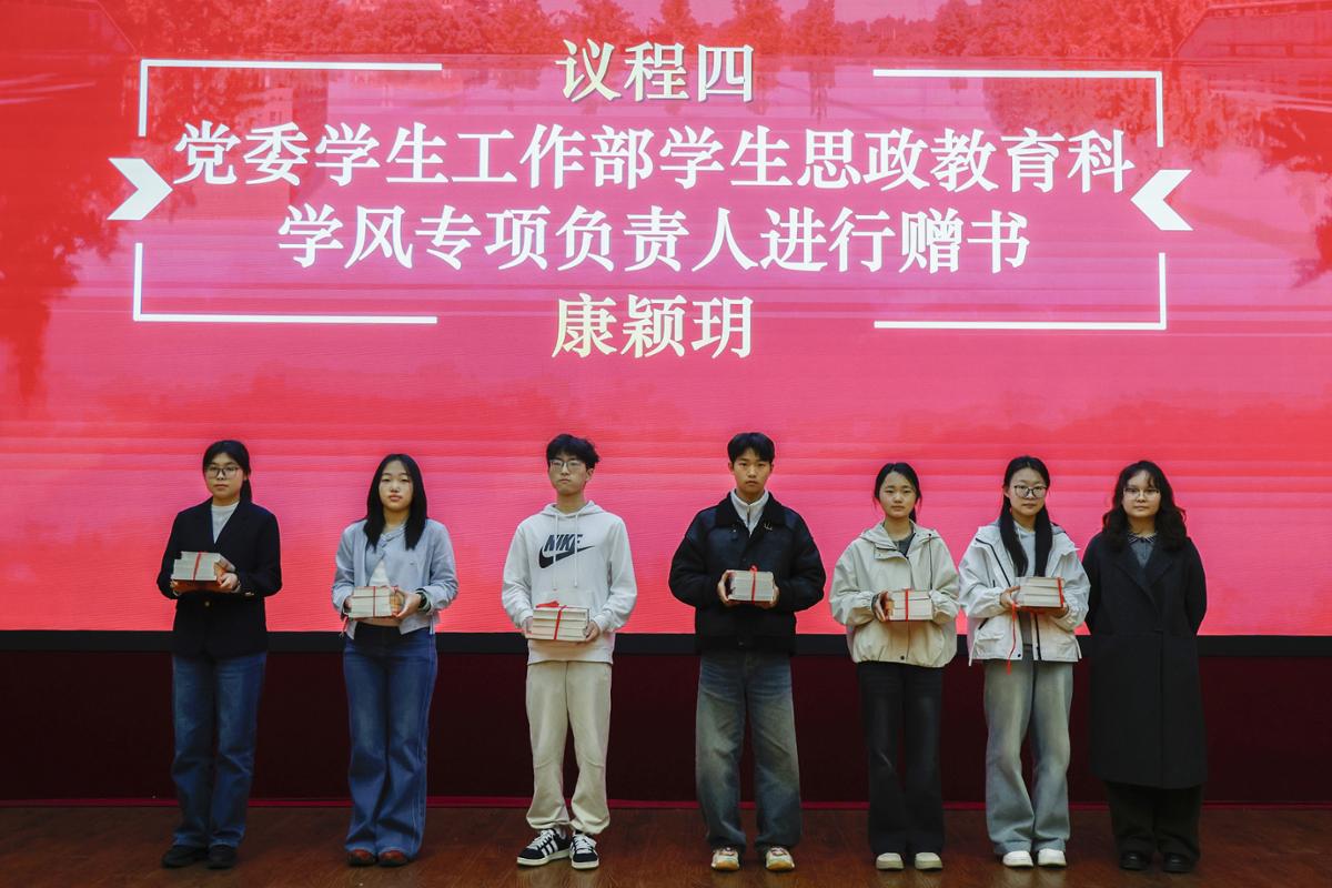 仪式上,党委学生工作部学生思政教育科学风专项负责人康颖玥为学员赠书,杨华为雏鹰班授旗,培训正式启动。