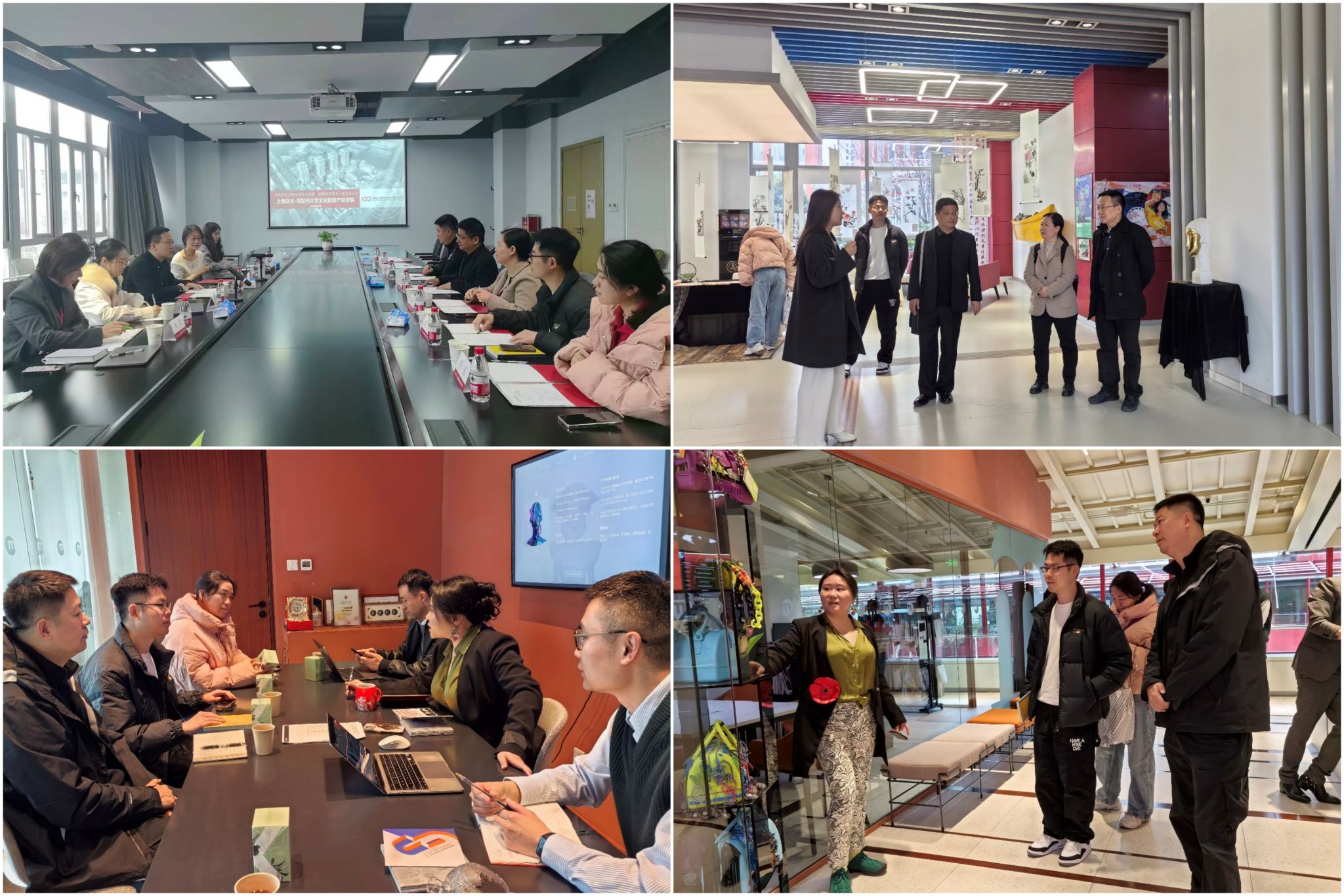 3月16日上午,调研组赴上海交通大学文化创意产业学院开展调研。在上海交大文创学院党委书记韩挺、院长助理陈佳靓等陪同下,参观了学院教研基地及实验室。随后的座谈交流中,双方围绕交叉学科布局与特色方向凝练、课程体系创新与人才培养模式改革、教学质量保障体系建设、校企合作机制与文创产业资源整合、学生创新创业支持体系,以及高层次人才引育及教师发展激励机制等议题进行了深入交流。在上海期间,调研组还走访了马兰戈尼上海校区。马兰戈尼学院中国及亚太区首席运营官、马兰戈尼(上海)校长程莹婷热情接待了调研组一行。双方就时尚设计教育的先进理念、国际合作办学项目的课程体系与教学模式进行深入探讨,并就学生国际交流项目、海外实习及就业支持机制等具体实践进行了细致调研。