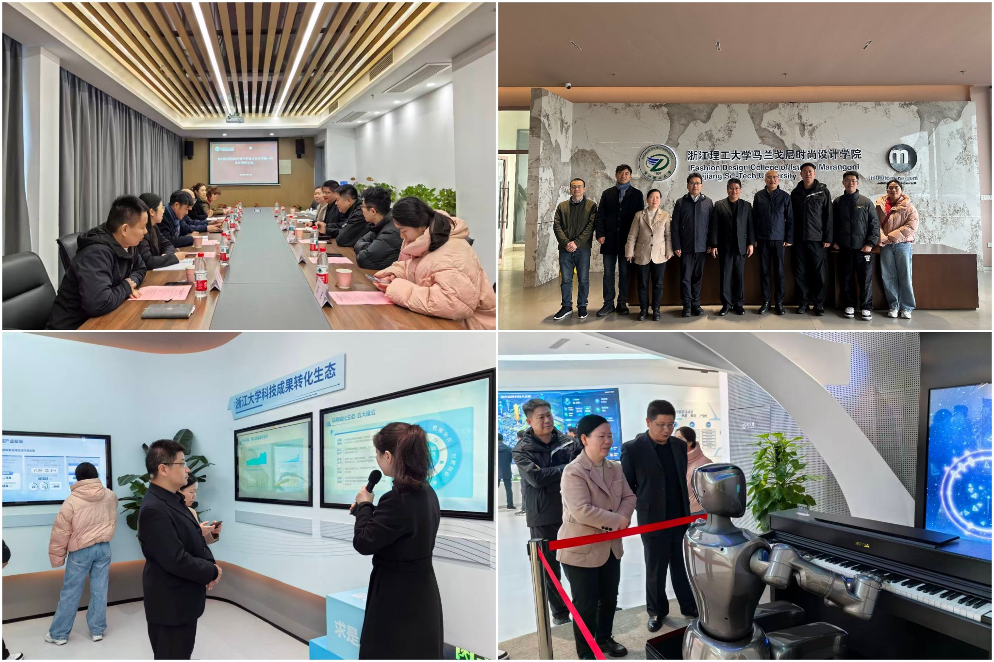 3月17日上午,调研组一行赴浙江理工大学马兰戈尼时尚设计学院开展专题调研。浙江理工大学马兰戈尼时尚设计学院党委书记傅翔,院长刘正,党委副书记、纪委书记朱诗威等出席座谈会。双方重点围绕中外合作办学项目管理、国际化课程体系构建、学生培养与管理,以及跨校学科交流合作等工作进行了深入交流。下午,调研组一行前往浙江大学校友企业总部经济园参观交流,实地考察校友经济产业园的运营模式及校企合作孵化平台的搭建机制,为学院下一步凝聚校友力量、深化产教融合平台建设提供了有益借鉴与新思路。