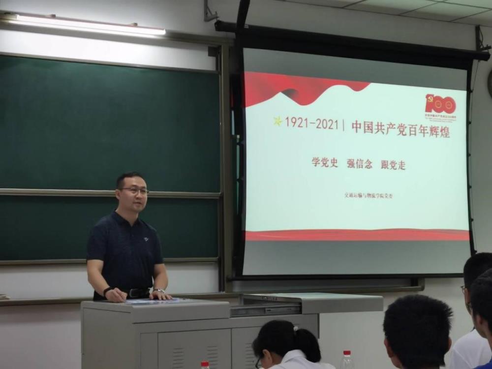 7月1日晚,交通运输与物流学院党委刘继宗副书记为2019、2020级交通运输(城轨)党员、入党积极分子讲授《中国共产党百年辉煌》专题党课。