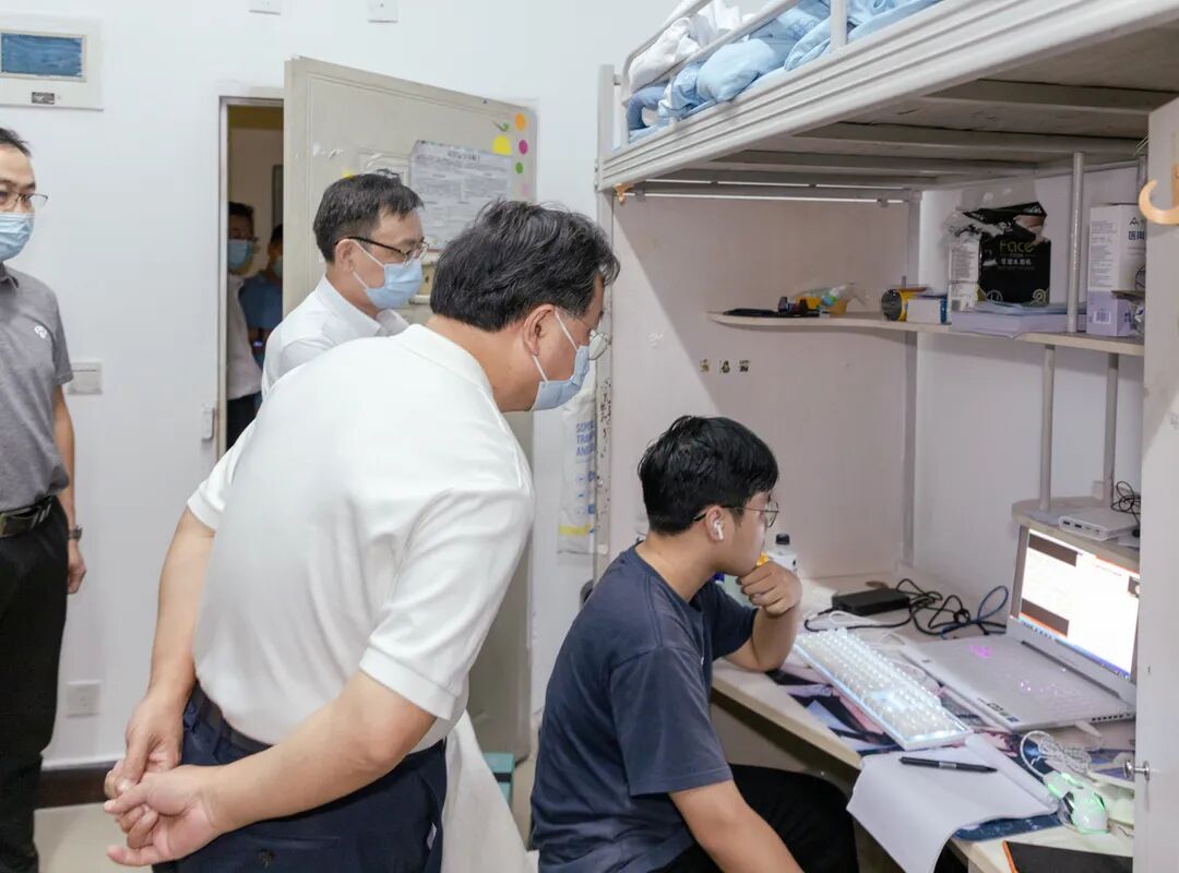 物理科学与技术学院党委副书记郭剑第一时间带领辅导员深入园区走访部分学生宿舍,了解学生尤其是大一新生的思想动态和实际困难,指导学生在当前疫情防控背景下培养良好的学习生活习惯,鼓励他们坚定信心,做好防护,积极配合学校疫情防控工作。