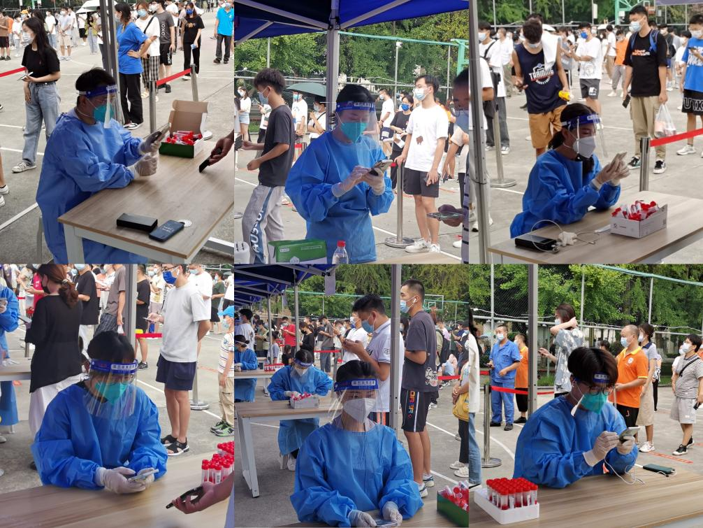 下午3时,学院12名党员志愿者老师在王斌、杨宏毅的带领下来到核酸检测现场。党委学生工作部李毅副部长统一分派工作后,志愿者们先做好自我防护,再有序来到分派岗位进行志愿服务工作。