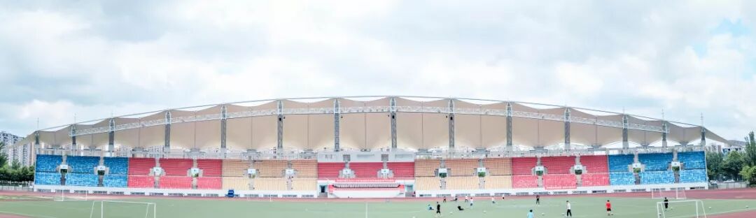 你坐在看台饮下一口汽水