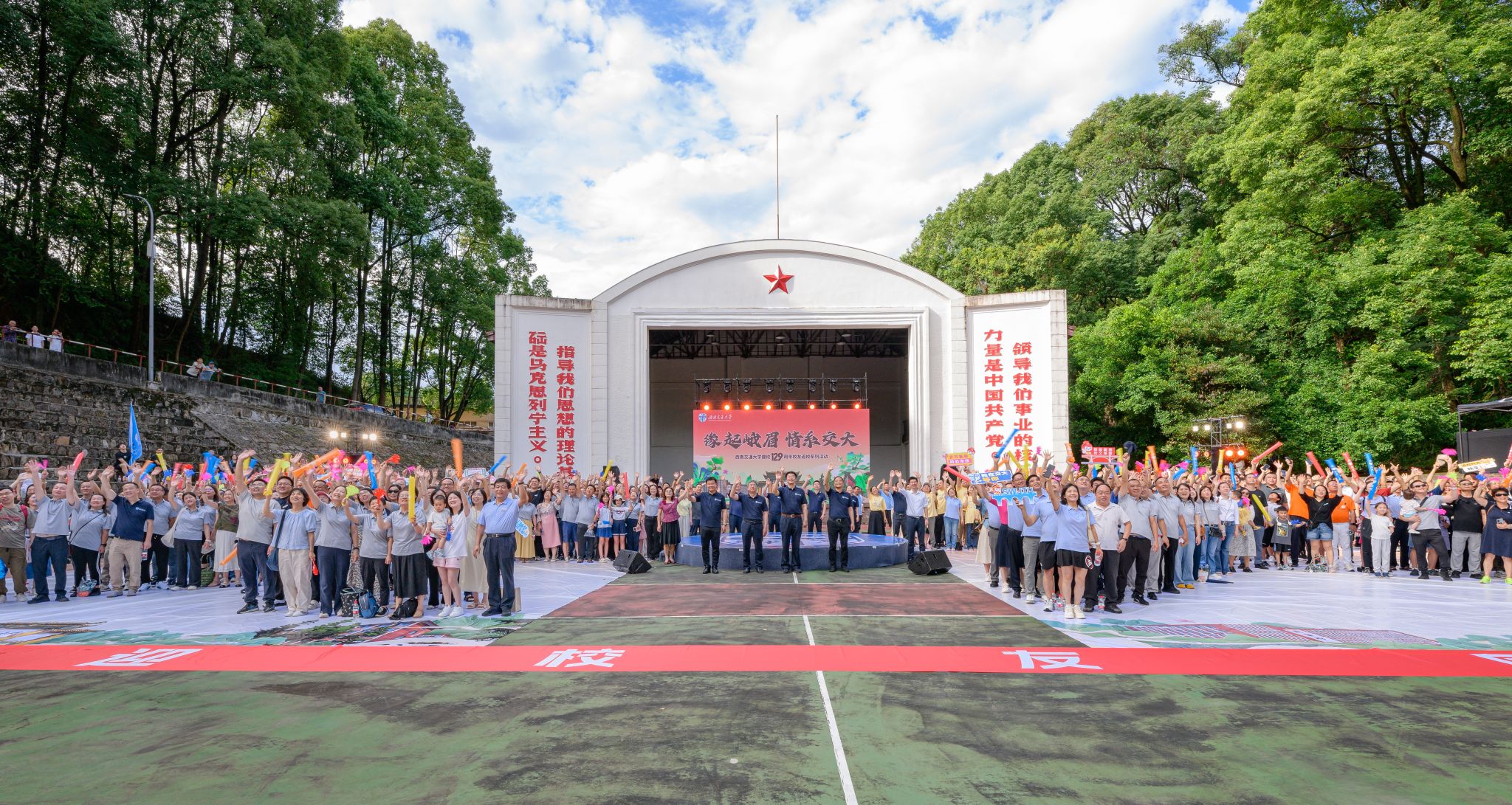 闫学东代表学校向长期支持西南交大在峨眉办学的乐山市委市政府、峨眉山市委市政府表示感谢,向从五湖四海返校的校友表示热烈欢迎。他谈到,在跨越三世纪的办学历程中,峨眉办学岁月在交大发展历史上留下了浓墨重彩的印记,培养出院士大师、专家学者、大国工匠、行业翘楚等一大批杰出英才,为国家经济社会发展、特别是为我国轨道交通事业发展作出了不可磨灭的贡献。学校一系列办学成绩离不开广大校友的关心、支持和帮助,从母校走出的四十余万栋梁英才,是母校最骄傲的成就,也是最值得信赖的力量。明年学校即将迎来建校130周年校庆,希望全体校友们团结起来,共同助力母校未来事业发展,奋力书写属于新时代交大人的崭新篇章。