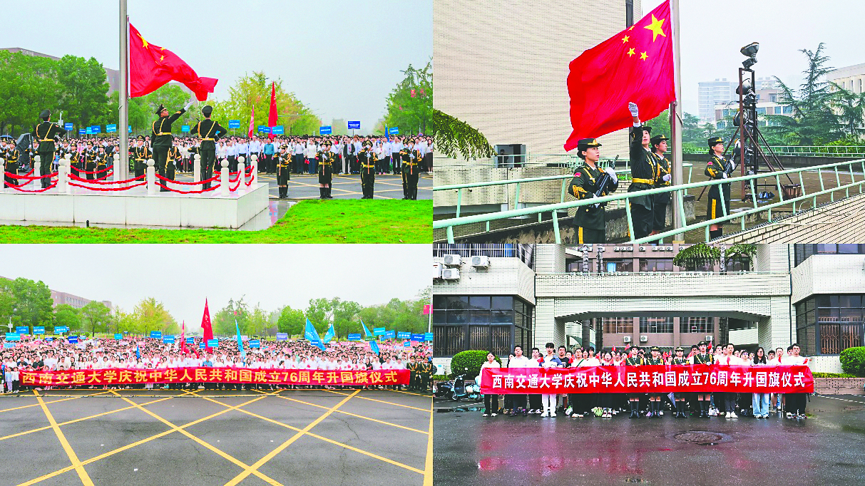 上午8时30分,犀浦、九里两校区同步举行庄严的升国旗仪式。国旗班的同学们组成方阵,迎着朝阳,迈着整齐有力的步伐,护卫国旗入场。师生肃立,目光齐聚国旗,国歌奏响的瞬间,旗帜随风展开,缓缓升上天空。仪式上,《诗画中国》节目的真挚演绎,抒发了对祖国壮丽山河的无限热爱,更展现了新时代交大青年勇担使命、昂扬向上的精神风貌。升旗仪式在师生齐唱《我爱你中国》中圆满结束。