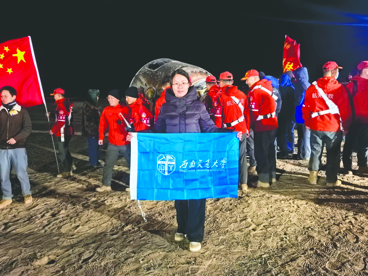 本报讯 北京时间2025年11月14日16时40分,神舟二十号航天员乘组搭乘神舟二十一号载人飞船返回舱在中国酒泉卫星发射中心东风着陆场顺利着陆,航天员陈冬、陈中瑞、王杰安全顺利出舱,健康状态良好。西南交通大学化学学院周祚万教授、徐晓玲副教授团队研发的新型杀菌技术试验模块经神舟二十号航天员乘组在轨试验后,随神舟二十一号载人飞船返回舱顺利返回地球,徐晓玲副教授在着陆场现场接收下行样品。